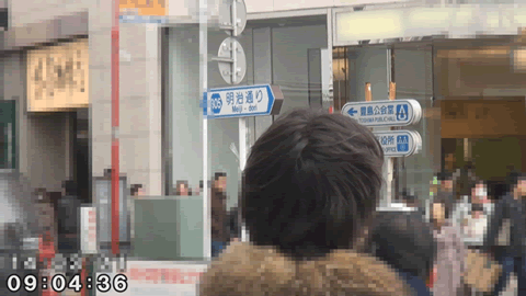 ![]() (※※通り看板) ![]() (※※通りに入る対象者) ![]() (※※※※※※交差点にて信号待ちをする対象者) |