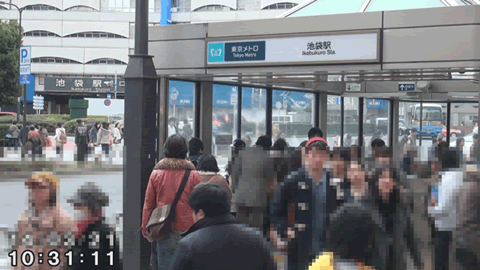 | 午前10:31 | 同駅、「35番口」より地下に入る。![]() (池袋駅「35番口」より地下に入る対象者) ![]() (同駅「35番口」を表記) ![]() (地下道を歩く対象者) |