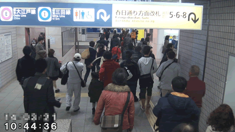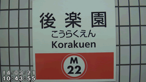同線「後楽園駅」にて下車、「後楽園方面改札」へ向かう。![]() (ホームを歩く対象者) ![]() (構内駅名表示) ![]() (後楽園方方面改札へ向かう対象者) |