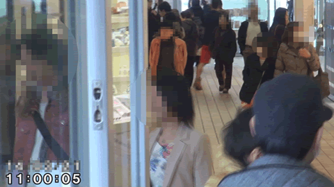 素直に出口には向かわずに2人は商店へ入ってしまいましたが、別の調査員2名が背後から監視していますので、2人が死角に入ってしまっても慌てずに2人が出てくるのを待ちます。