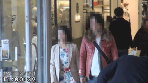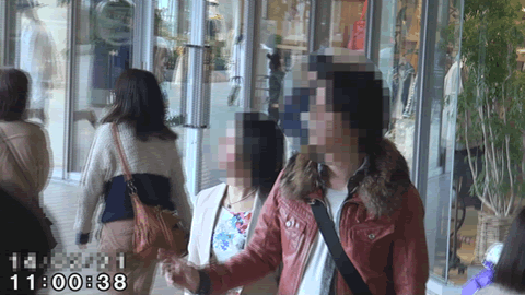 ![]() (「※※※※ ※※※※※※※※※」を出る二人) ![]() (施設内、観覧車の方向を見上げる二人) |