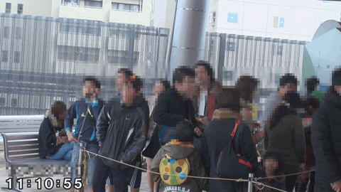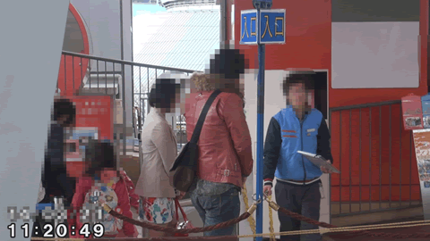 この時、調査員2名は対象者と同じ乗車待ちの列に並び、1名は出口側で待機します。