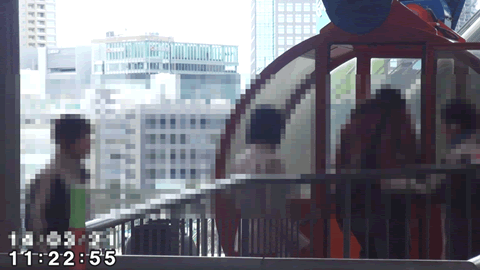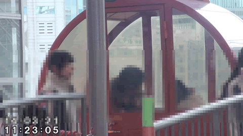 ![]() (ゴンドラに乗り込む二人) ![]() (ゴンドラ内の機械を操作する二人) |