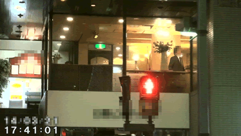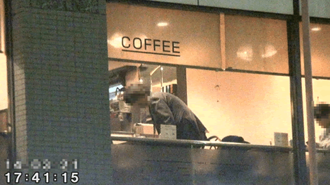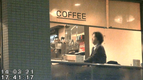 ![]() (店内奥に向かう対象者) ![]() (窓際のボックス席に座る対象者) ![]() (窓際のボックス席に座る対象者) |