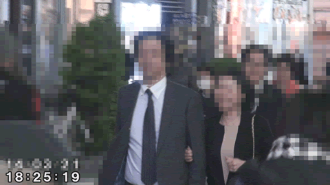 同通りに向け歩き始めて約3分経過後、二人は腕を組む。![]() (腕を組み歩く二人) ![]() (腕を組み、笑顔で対象者と会話をする女性A) ![]() (※※※※※※※※通りに向かう二人) |