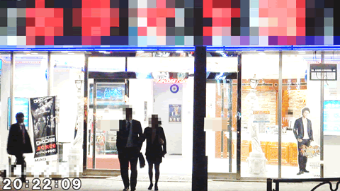 | 午後 8:22 | 約1時間半後、同店を出て、「※※通り」方面へ向かう。 尚、同店の支払いは対象者が行なっている事を確認。 ![]() (カラオケ店を出る二人) ![]() (※※通りに向かう二人) |